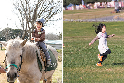 1日ゆったりと過ごしていただけるように行程を組んでおりますので、牧場の1日を思いっきり満喫してください! 広い芝生でのかけっこもポニーの乗馬体験もオススメです!