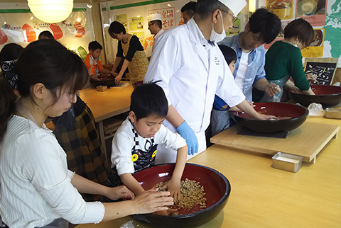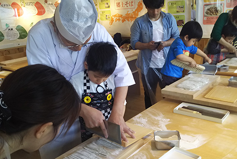 そば打ち先生は「蕎麦工房 サガミ」のそば打ちマスター! 1つ1つの手順やコツを丁寧に教わりながら進めていきます